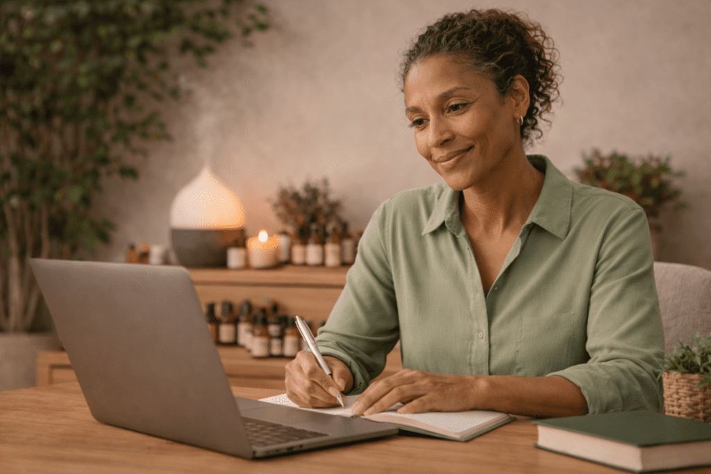 Um treinamento prático, direto e acolhedor para aromaterapeutas que já estudaram muito, mas que ainda travam na hora de atender.